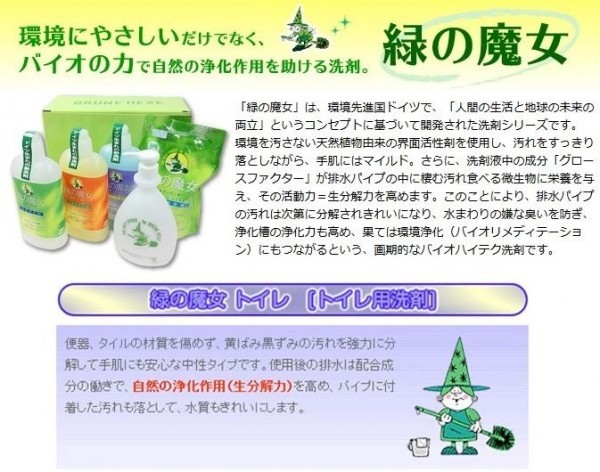 便器、タイルの材質を傷めず、黄ばみ黒ずみの汚れを強力に分解して手肌にも安心な中性タイプです。使用後の排水は配合成分の働きで、自然の浄化作用(生分解力)を高め、パイプに付着した汚れも落として、水質もきれいにします。 |