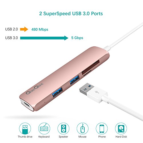 [Instant Expansion] Plug & Play with Super Speed @5Gbps (USB 3.1 Gen1); 2 x USB 3.0 Ports, 1 x SD Memory Card Reader & 1 x microSD Memory Card Reader, able to connect keyboard, mouse, thumb drive, phone & access files from card reader slots;