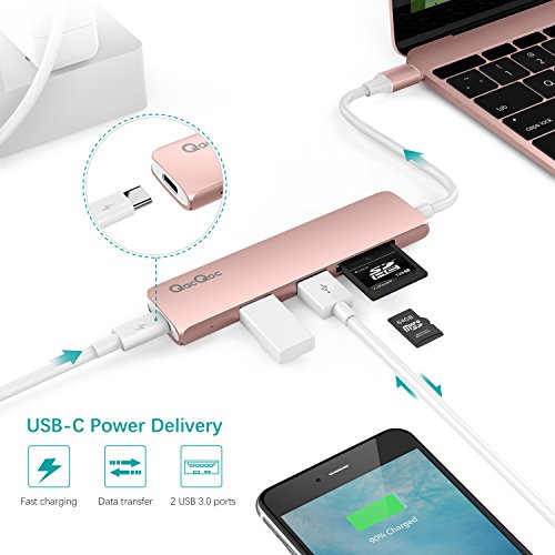 Full USB-C Functionality The USB-C hub is able to USB Power Delivery. This enables full-speed MacBook (2015) recharging while simultaneously connected to SuperSpeed USB 3.0 and SD and microSD card.