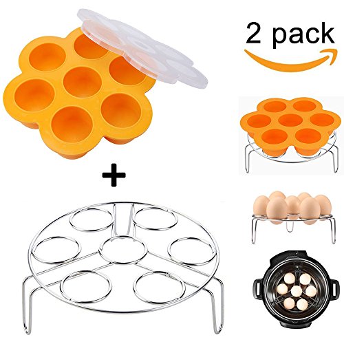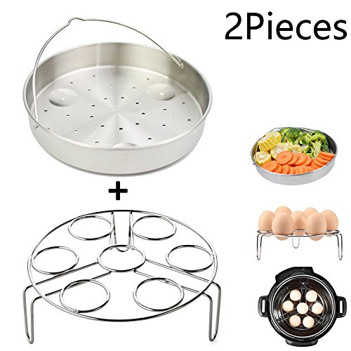 Food grade stainless steel steamer rack for instant pot, pressure cooker. Include Stainless Steel Egg Rack . Egg holder Size: 6.7x2inch. Steamer basket Size:8x2.5inch.Perfect instant pot accessories. It fits in 5/6qt or 8qt cooker ,such as Power Pressure Cooker XL, Cuisinart CPC-600, Nesco PC6-25P, Fagor 6-Quart, Instant Pot IP-LUX60/50, IP-DUO60/50