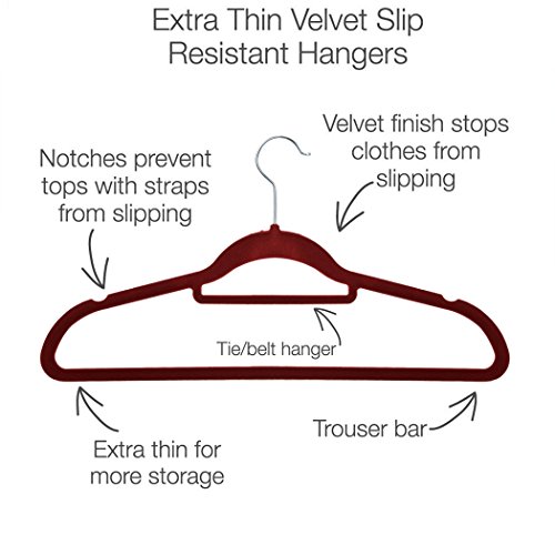 -. Feature : FEATURES: 50 attractive velvet non slip hangers, 360 degree swivel, sturdy design, can hold up to 10 pounds / Quality: high quality, satisfyingly smooth to the high velvet, do not fade / DESIGN: The anti-slip velvet texture of these elegant hangers along with notched shoulders ensure that your clothes will be kept in place without slipping or falling off / Ultra Slim, Space-saving, Increases More Available Wardrobe Space / Ideal place: Living Room, Bedroom, Bathroom, Kitchen, Dining Room, Home Office/Study, Utility/Laundry Room, Hallway