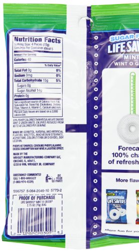 Life Savers Wint O Green Sugarfree Mints Candy Bag, 2.75 ounce (12 Pack)