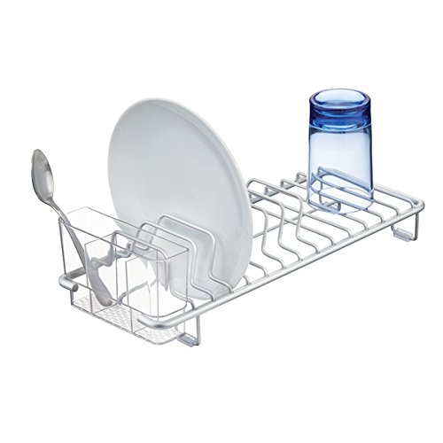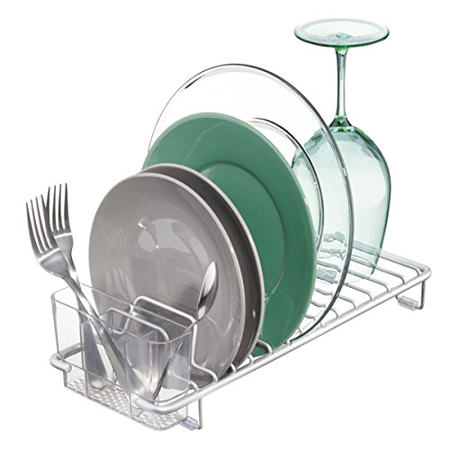 mDesign Rustproof Aluminum Compact Kitchen Dish Drainer for Drying Plates, Glasses, Silverware - Silver/Clear