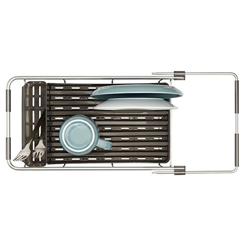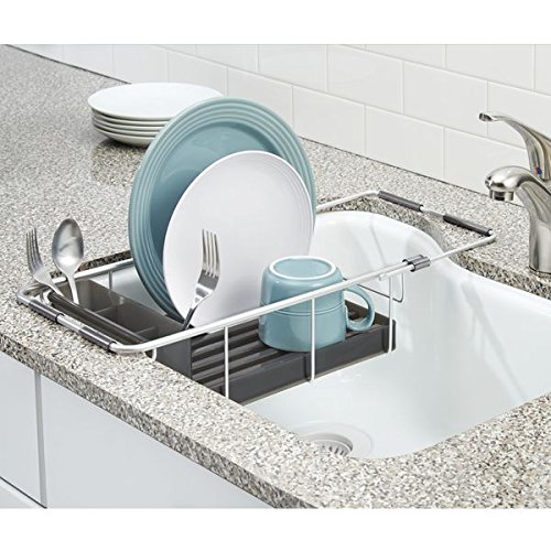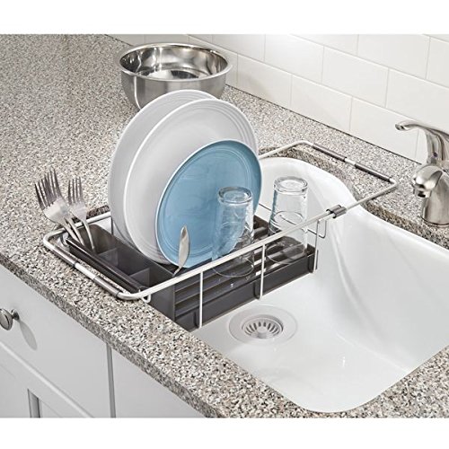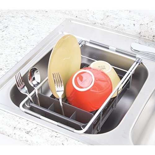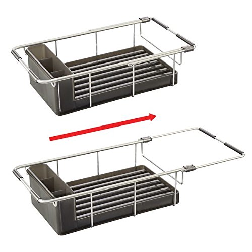 mDesign Rustproof Aluminum Over-the-Sink Dish Drainer Rack for Drying Glasses, Silverware, Bowls, Plates - Silver/Smoke