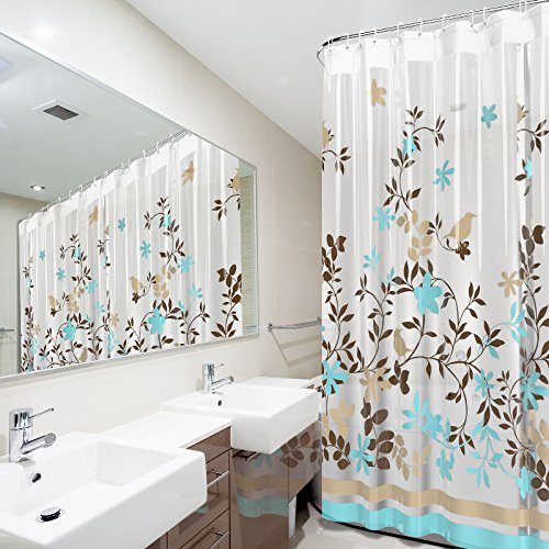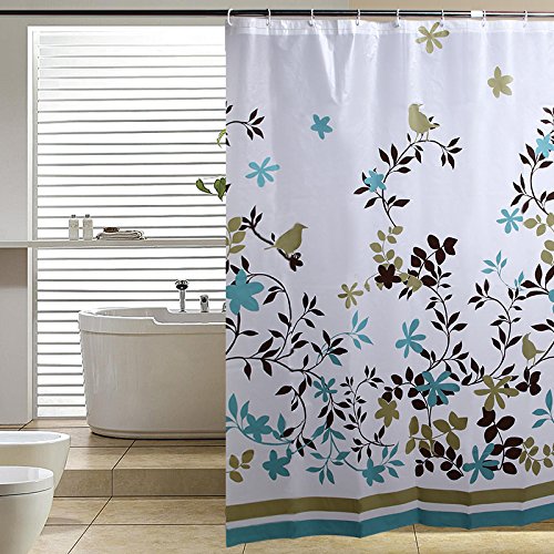 ELEGANCE - Our Decorative Shower Curtain provides a taste of nature to your bathroom at an unmatched VALUE. The Birds and Leaves, along with Teal, Olive, Yellow, and Brown Colors, are sure to create a tranquil atmosphere for you and your guests. This model is newly equipped with RUSTPROOF METAL GROMMETS and WEIGHTED MAGNETS for added stability, at no additional cost!