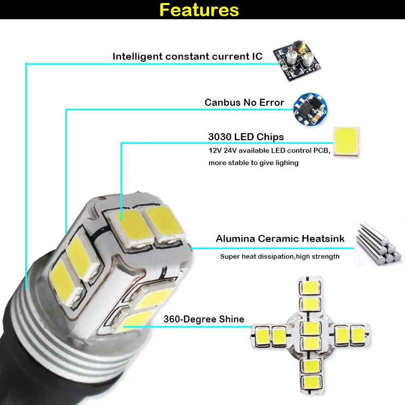 LED Chip:Built with 10pcs High quality 3030 Samsung chips LEDs