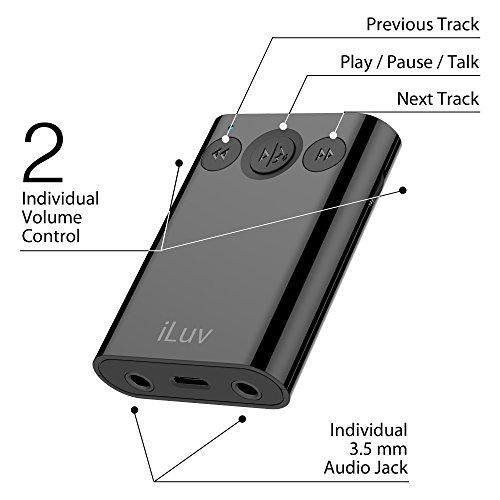 Bluetooth Stereo Receiver with Hands-free, 2-Way Splitter Adapter & Dual Volume Control for iPhone 7 & iPhone 7 plus, Samsung GS7/S8, Smartphones and Home/Car Audio System