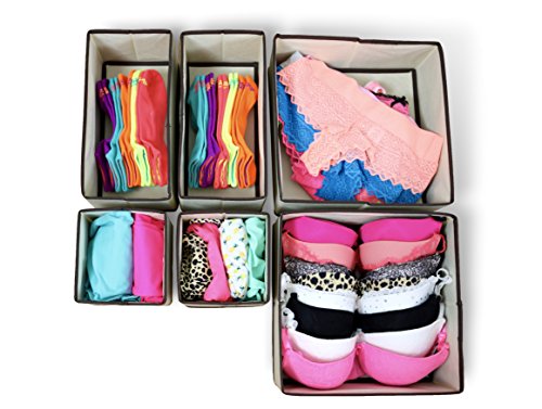 -. Title : Adorn 6 Piece set of Foldable Fabric Drawer Closet/Dresser Organizers