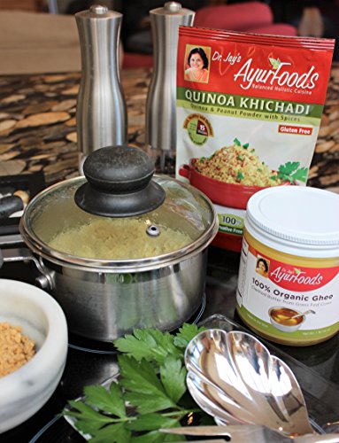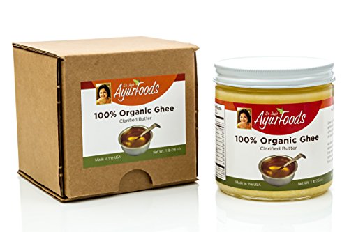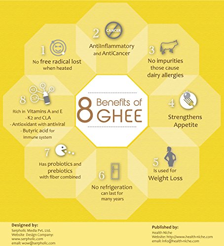 ✤LOTS OF USES - Swap Ghee for regular butter in cooking: sauté vegetables, meats or eggs at mid-high heat without burning. Melt on veggies, popcorn or dishes like Ayurfoods Khichadi (ASIN: B00NS8ZW2W). Use as an antiseptic or skin care lotion for dryness, cuts or burns