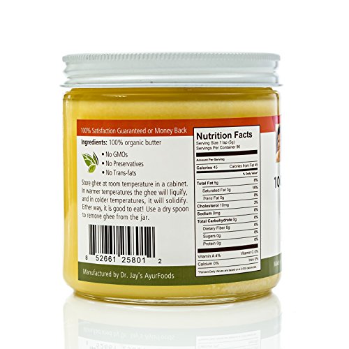 Dr. Jay’s 100% Organic Ghee (Grass Fed), 1 Pound Jar, BEST Clarified Butter Artisan Crafted in Small Batches, Pure Non-GMO Ingredients, Tasty Healthy...