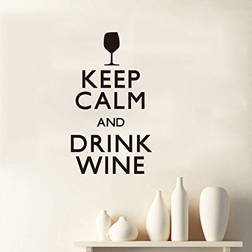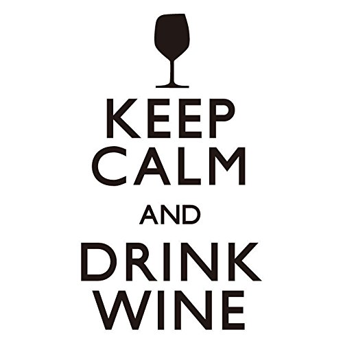 Kitchen Home Decor Wall Sticker Keep Calm and Drink Wine Quotes Wall Decal Home Living Room Dining Room Bar Decoration Mural YO-169 (Black, 32x57cm)