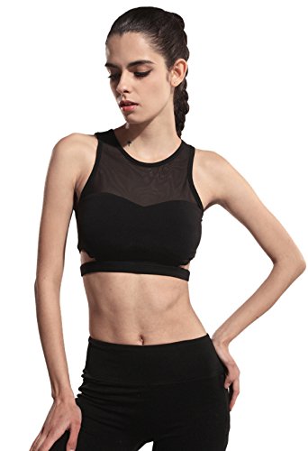 -. Title : 【ヨガ美人】 スポーツブラ ブラック 切り替えシースルー パット付き ヨガウェア