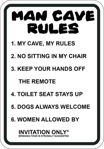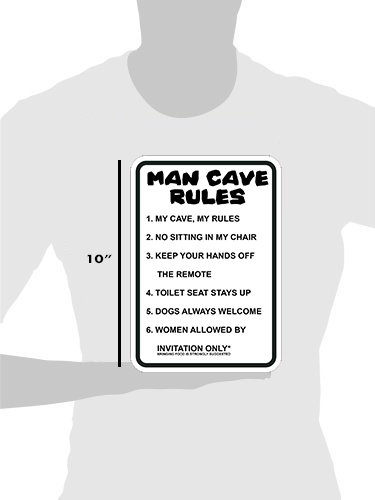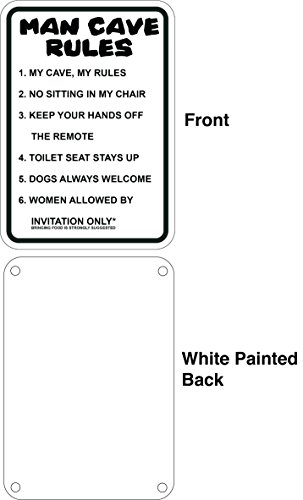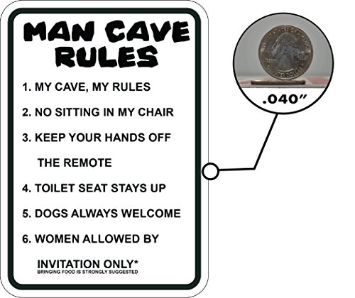 SIGN WISE Man Cave Rules metal wall sign. Six humorous rules 7" x 10" aluminum. Let everyone know, with humor, that there are rules in this Man Cave. Won’t rust and easy to install. Made in USA