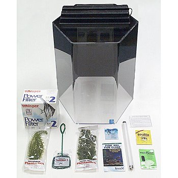 - Kit includes: Acrylic Aquarium, hood and fluorescent fixture (light bulbs not included) a power filter, plastic plants, fish net, fish food, water conditioner and how-to book