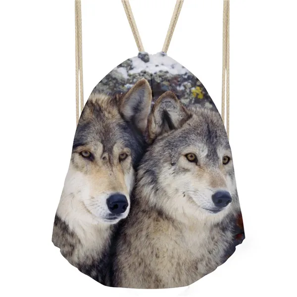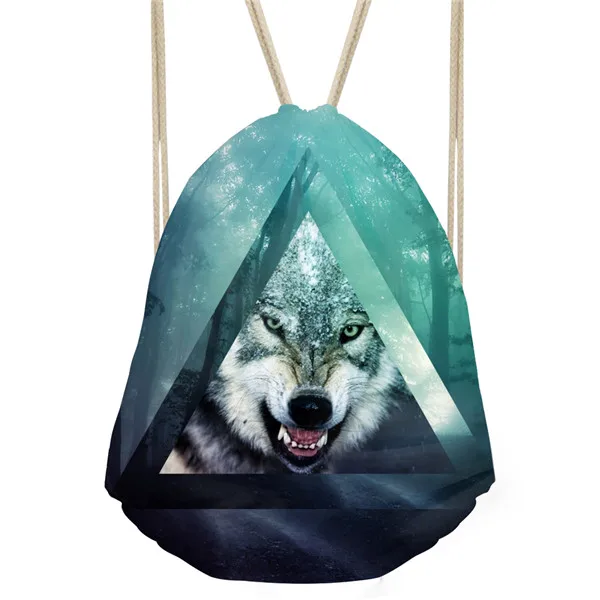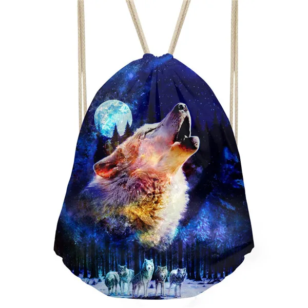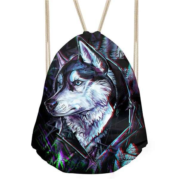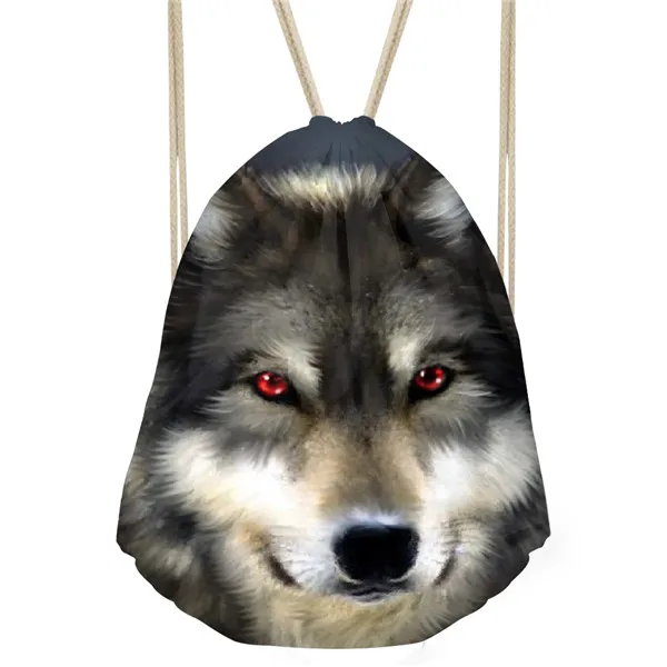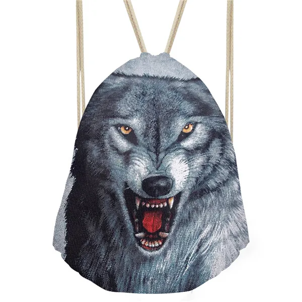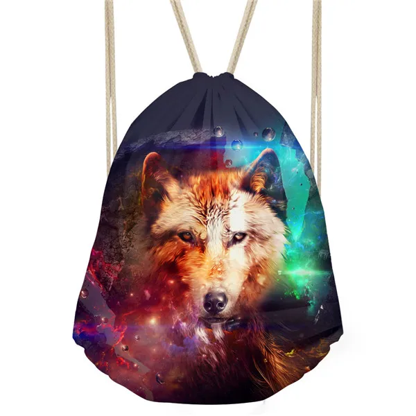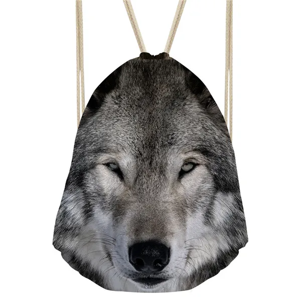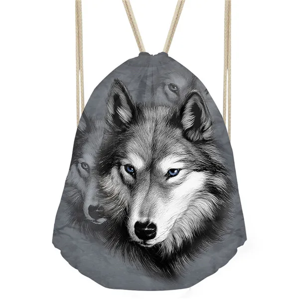 Type3:3D Cool Animal Wolf Printing Feminina Backpack String Shoulder Bags