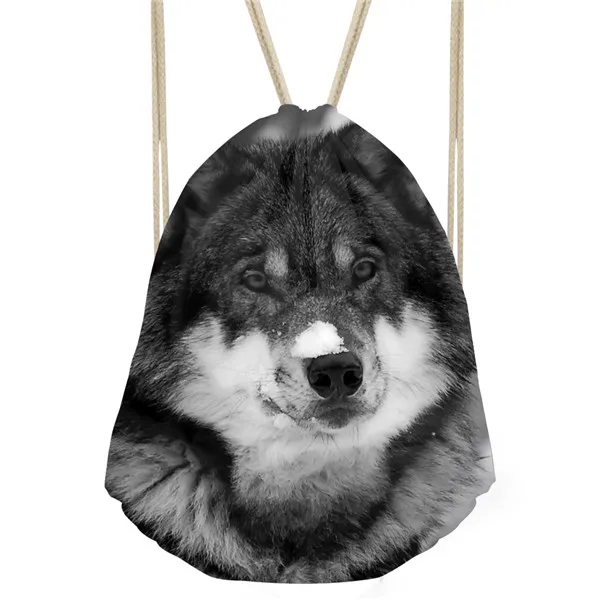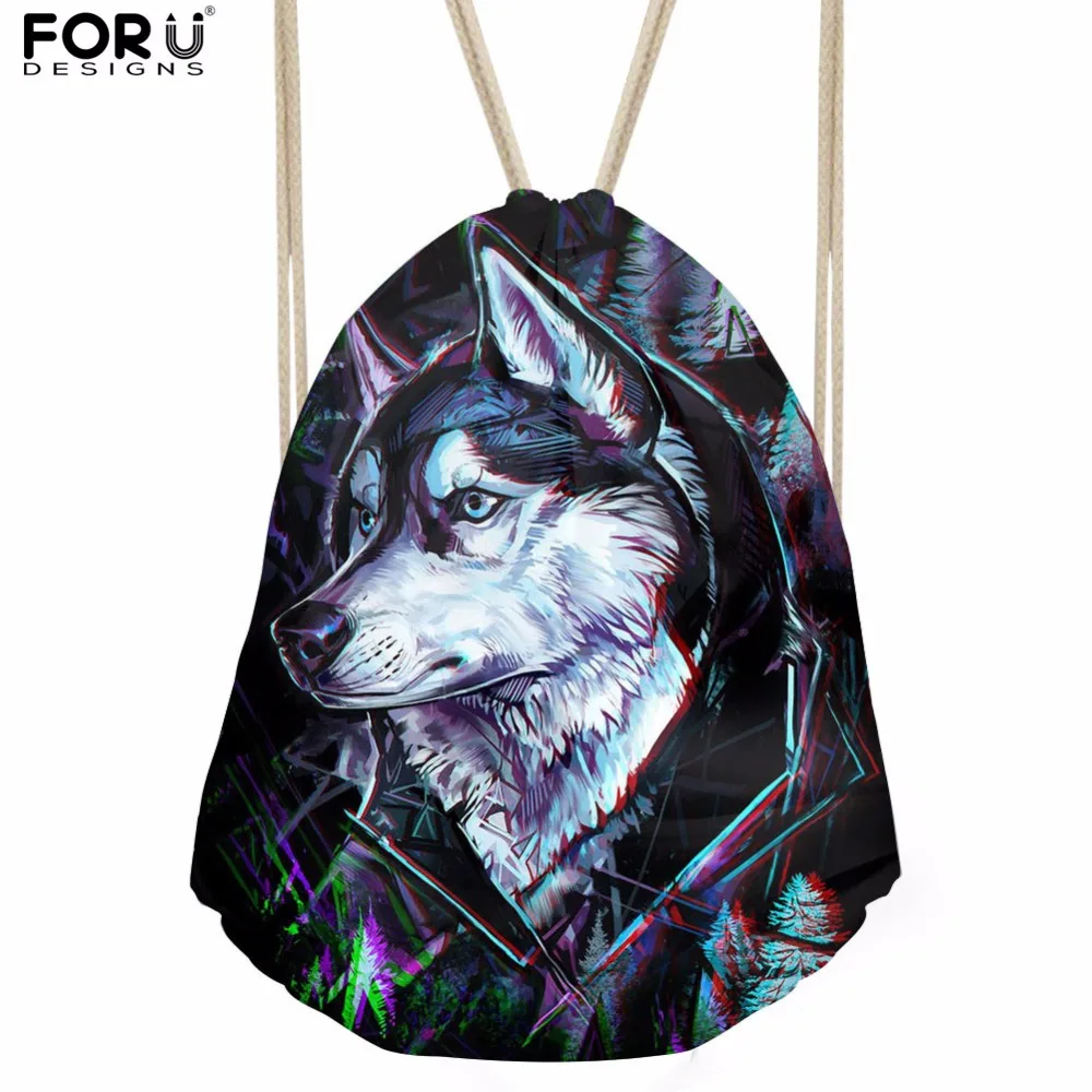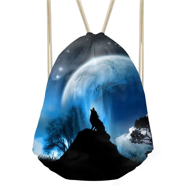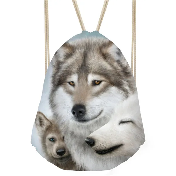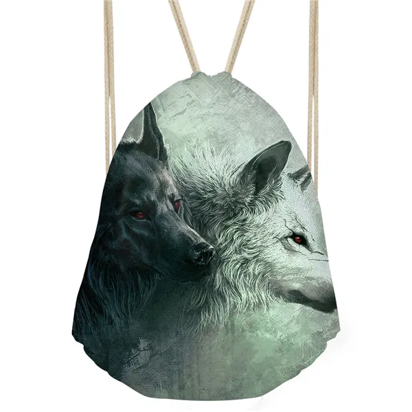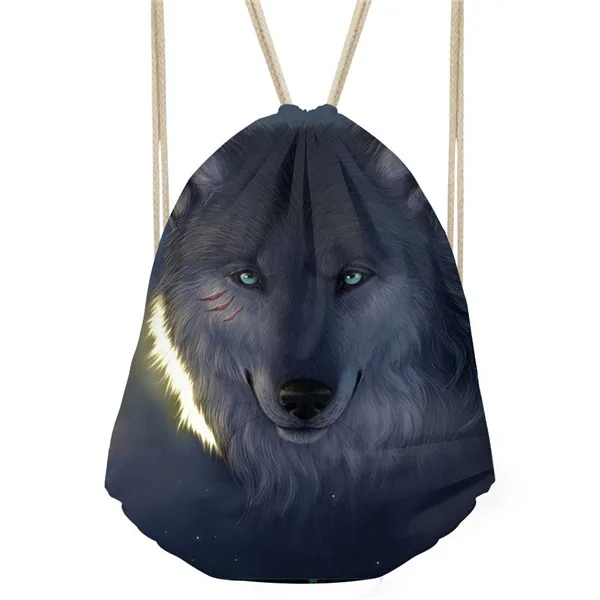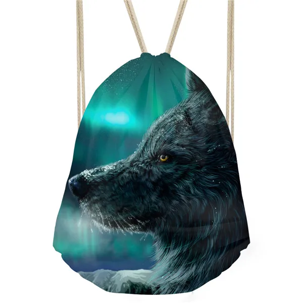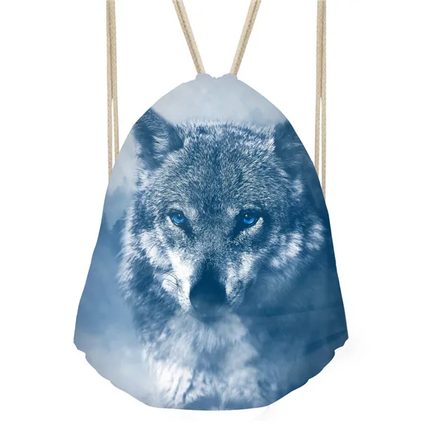 Type3:3D Cool Animal Wolf Printing Feminina Backpack String Shoulder Bags