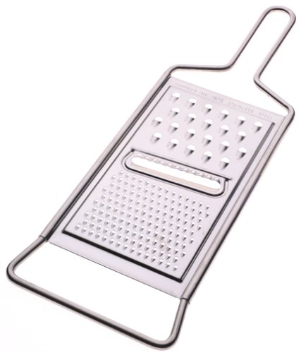 - Part fine grater, part coarse grater, and part slicer-steel handles on both ends
