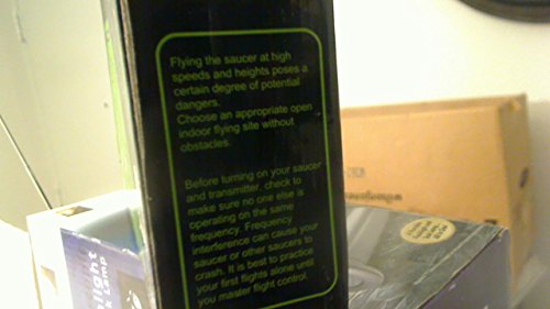 Product Description FLYING THE SAUCER AT HIGH SPEEDS AND HEIGHTS POSES A CERTIN DEGREE OF POTENTAIL DANGERS---FOR INDOOR USE ONLY---PLEASE SEE ALL PHOTOS FOR BETTER UNDERSTANDING OF THIS ITEM 0