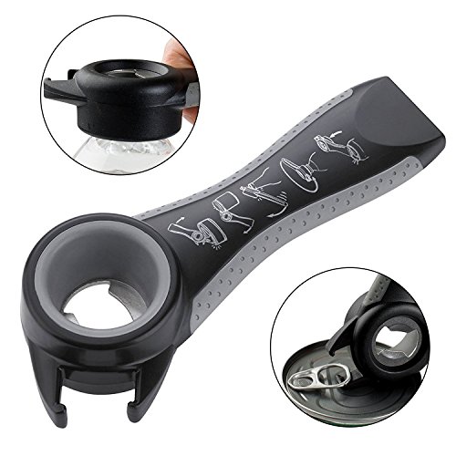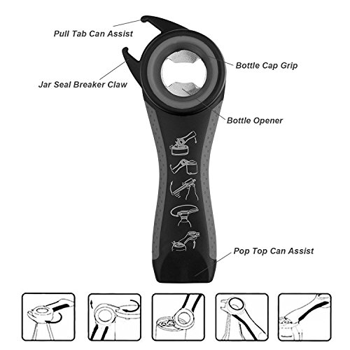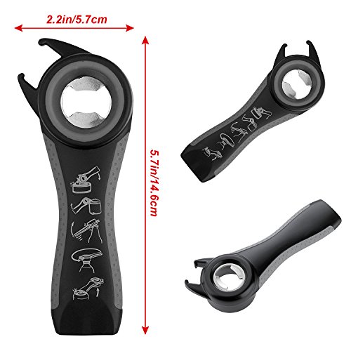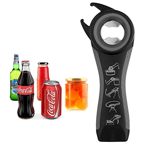 SHU UFANRO Multi-function Bottle Opener 5 in 1 Kitchen Tool Manual Can Opener Jar Bottle Cover for Can Jar Bottle Beer (Black)