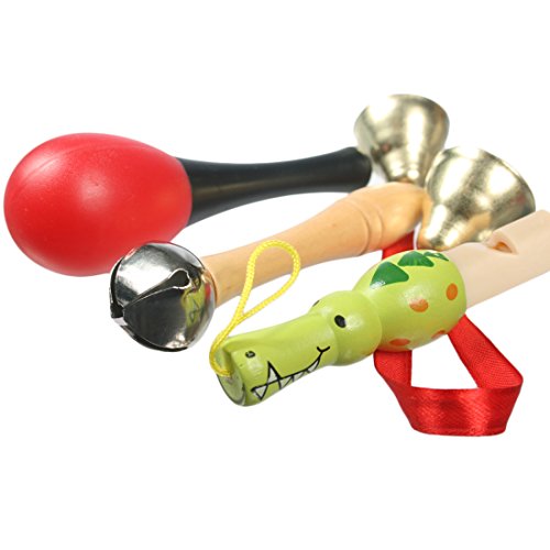 -. Feature : Includes 2 tambourines (7 inches and 14 inches), 2 wooden shaking bells, 1 whistle, 1 pair of touching bells, 2 castanets, 2 egg shakers, and 2 maracas as shown in picture / Comes with 1 kilofly bag for easy storage and organization / Great for both individual and group play / Suitable size for preschool and early elementary children / Let your kids enjoy playing music and be creative at an early age