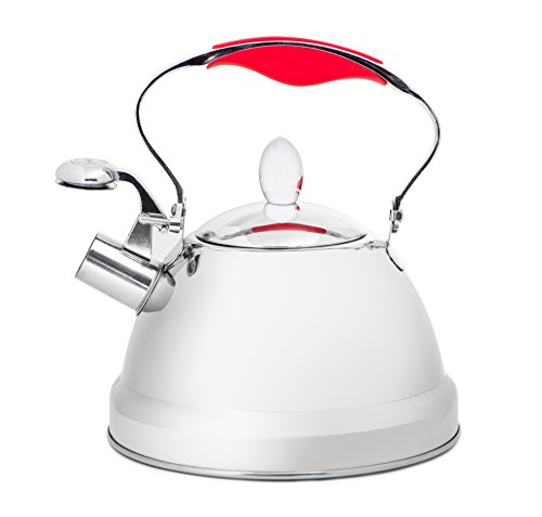 5-ply capsulated bottom (Stainless Steel + Aluminum + Iron + Aluminum + Stainless Steel), the whistling tea kettle offers a rapid boil that's