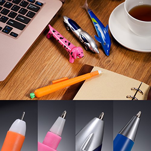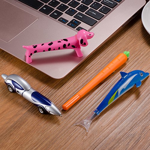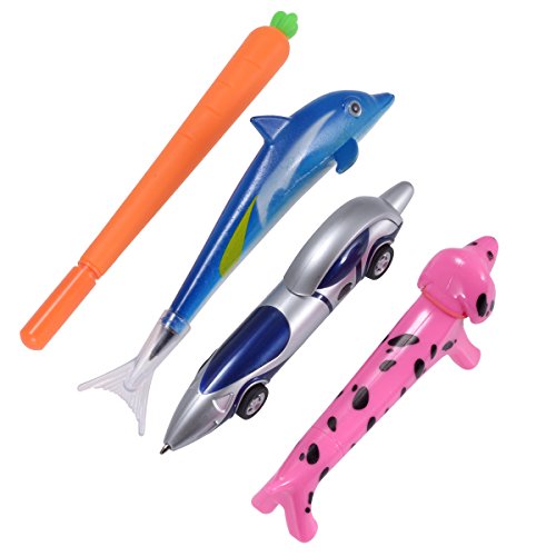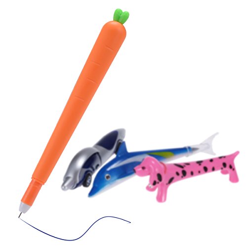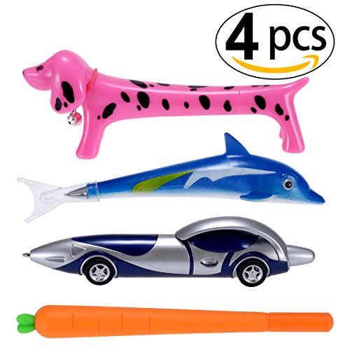 Four different shapes of pens: carrots, dog, dolphins, cars. They are lovely toys.