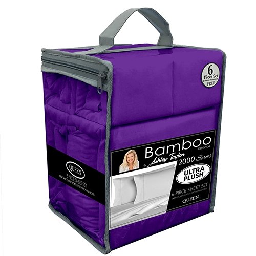 Bamboo Essence 2000 Series by Ashley Taylor 6-Piece Ultra Plush-Wrinkle Free-Deep Pocket Sheet Set (Queen, Purple)