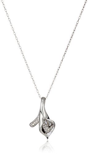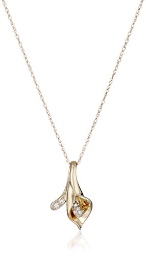 -. Title : 10k Gold Calla Lily Diamond Accent Pendant Necklace