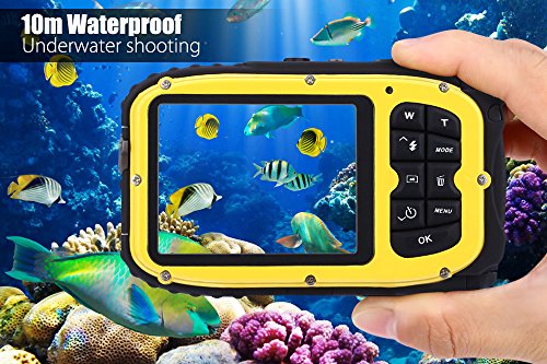 Waterproof Camera, Fitiger Underwater 10m 2.7 inch LCD Digital Camera 16MP 8x Zoom Cameras Waterproof Camera (Yellow)