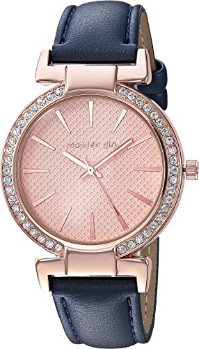 - Dial features hour markers, brand name detail, and rose-gold face with rhinestone accents.