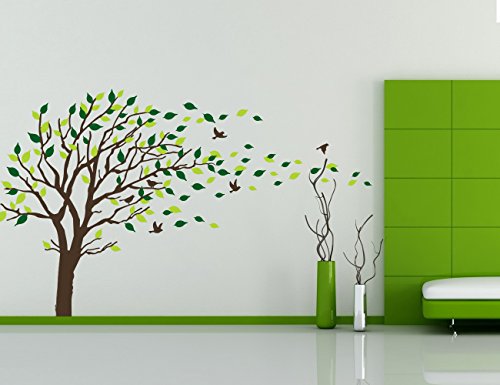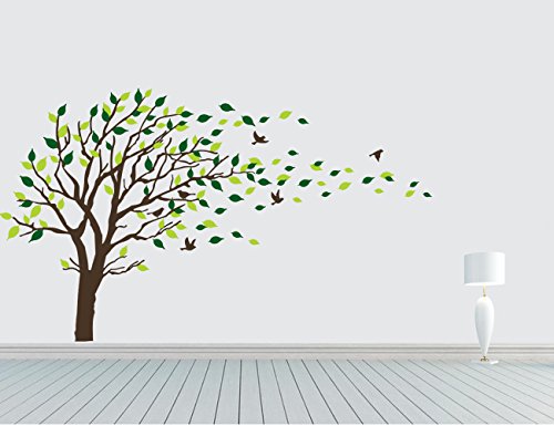 Huge Size Green Tree Birds Wall Decals Removable Wall Decor Decorative Painting Supplies & Wall Treatments Stickers for Girls Kids Living Room Bedroom office