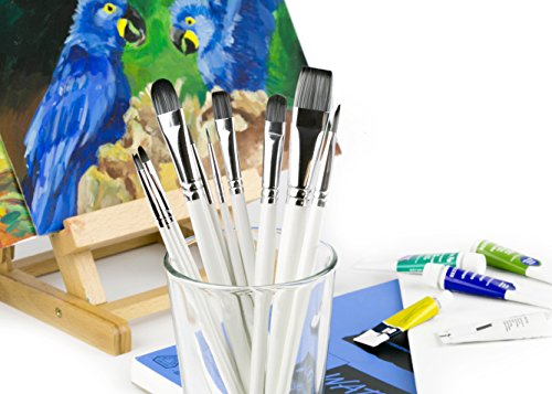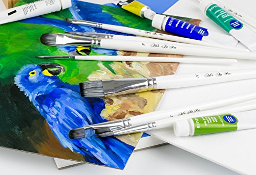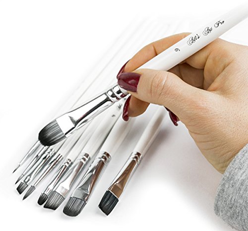 Adi's Art Pro Paint Brushes Set for Acrylic Oil Watercolor, Artist Face and Body Professional Painting Kits with Synthetic Nylon Tips, 10 Pieces - White