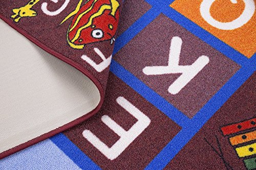 Play-time becomes active learning with our Jenny Collection. This entertaining collection features vibrant colors, fun designs, letters, numbers and shapes that kids can identify and learn easily by engagingly having fun. Stimulate your kids’ natural curiosity for learning and discovery with a rug from this collection. A for Apple, Z for Zebra… Our Dark Red Frame with Multi Colors Kids Children's Educational Alphabet (Non-Slip) Area Rug offers an extremely easy and fun way to introduce your kids the English alphabet and basic punctuation marks. On the edges of the rug, charming little animals and images correspond to the letters from A to Z; and in the middle, solid letters pop on the colorful blocks. The non-slip rubber backing, soft nylon pile and reinforced overlock edges are all high quality materials to let this game rug offer years of entertainment safely. These long-lasting kids educational rugs are available in multiple sizes and ideal for daycare centers, pre-schools, nursery schools, kindergarten classrooms, childcare centers, children's bedrooms and playrooms. They are also ideal gifts for holidays, baby showers and birthdays and are guaranteed to put a smile on their faces. Pick a quality rug from our Jenny Collection to stimulate creative playtime and accent your kids’ room, nursery, classroom, daycare or playroom.Feature