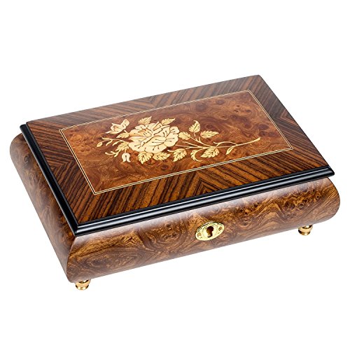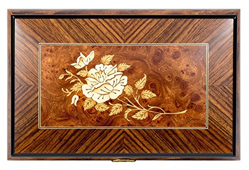 Rose Flower Italian Hand Crafted Inlaid Wood Jewelry Music Box Plays Sleeping Beauty Theme