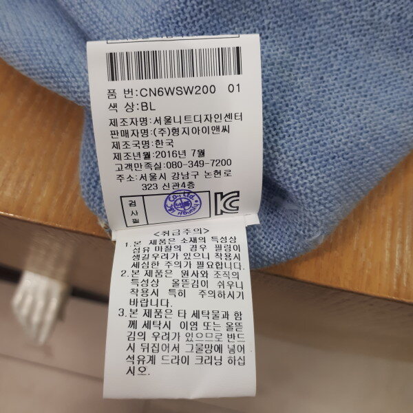 모100%의 봉제선이 없는 홀가먼트니트티입니다.