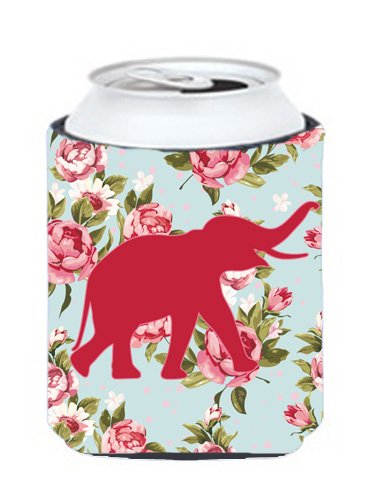 Elephant Shabby Chic Blue Roses Can or Bottle Beverage Insulator Hugger BB1011