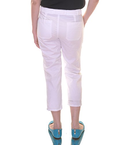 Product Description Pants feature skinny leg, cropped style, cotton fabric, front and back pockets, tunnel belt and zip fly with hook and bar closure. 0