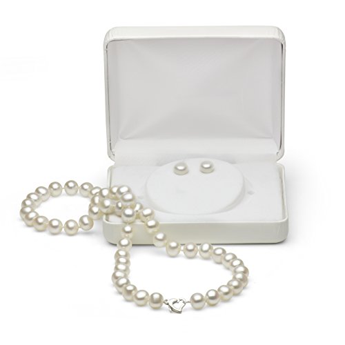-. Feature : 925-Sterling Silver jewelry set, comes with an 18-inch length necklace that can be worn by everyone. Along with the necklace, you also get earrings set. The earrings compliment the necklace and help you complete the look. / These Freshwater Cultured Pearls come with natural high luster and shine which makes them look extremely exquisite. Our pearls represent the finest in pearl selection, hand-picked for its luster, cleanliness quality, and color. / Perfect gift set for yourself or for the women you value and love. Give it to a woman of any age, and she is surely will love and appreciate this beautiful jewelry set. This set can help you convey what you were unable to say with words. / Wear these pearl fine jewelry set to an evening event with an elegant dress or wear it to work with your formal attire. Pearls are a necessity for everyone's jewelry collection. / This jewelry set is beautifully assembled and designed by our highly skilled jewelers in the USA with great attention to quality and detail. To guarantee your complete satisfaction, we offer our customers a 45-Day return policy