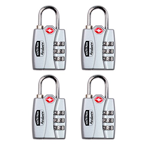 South Main Hardware 810111-4 810111 Instant Search Alert Tsa Accepted Combination Luggage LOCK, Silver (4 Pack)