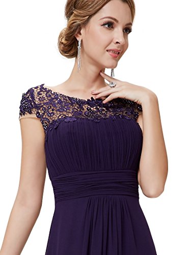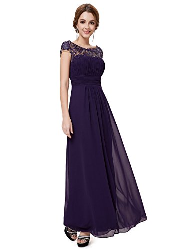 Elegant black chiffon evening dress with lacey cap sleeves. Perfect for your next formal occasion whether it be an evening party or even your turn as the mother of the bride or groom. Delicate lace and rhinestones decorate the neckline while the ruching in the bust and waist creates a figure flattering silhouetteFeature