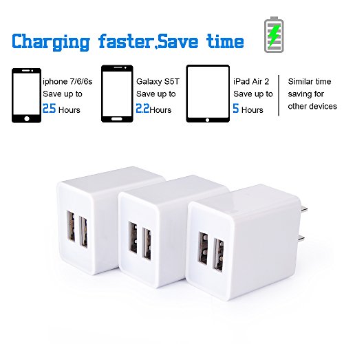 Universal dual USB charger cube allows you charging two mobile devices simultaneously at 2.1 amps speed. Fast charger maximize charging efficiently for home, travel and office. Save more time.