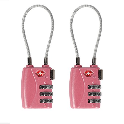 Xunbin TSA Lock Combination Padlock 2 Pack- 3-Digit Combination Security Cable Padlock-Suitcase Cable Lock TSA Luggage Locks Special Alloy (PINK)