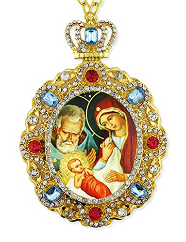 -. Feature : Religious Christmas Ornament Icon Jeweled Russian Icon Pendant Nativity of Christ Jesus Mary Christ Chain / The Unique Gift Idea For Any Occassions - such as Christmas, Easter, Mother's Day, Birthday and more / This Beautiful item can be used as a Room Decoration, Car decoration and Tree Decoration / size: 4 inch x 3 inch - size of the chain 2 3/4 inch / Gift Boxed