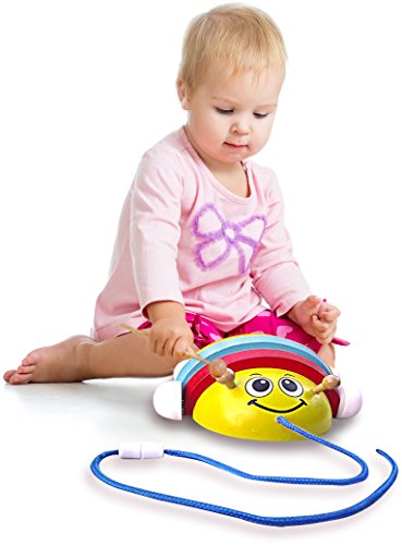 Made of wood, with a flexible structure, eye-catching colors and particularly durable, this wooden beetle toy is not just a children's pull toy: it is an excellent developmental toy that will help your toddler explore the world and will boost its emotional and mental development!