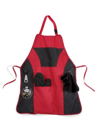 - Kit includes: apron, detachable bottle opener, padded oven mitt and towel (towel size: 11" x 11")