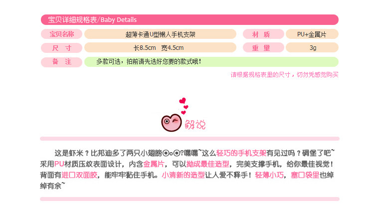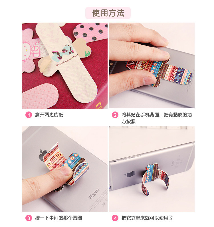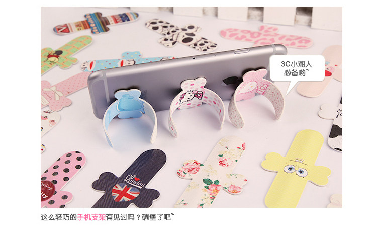 (1套5个)懒人u型手机支架通用粘贴便携式小托架桌面创意卡通可爱魔力贴