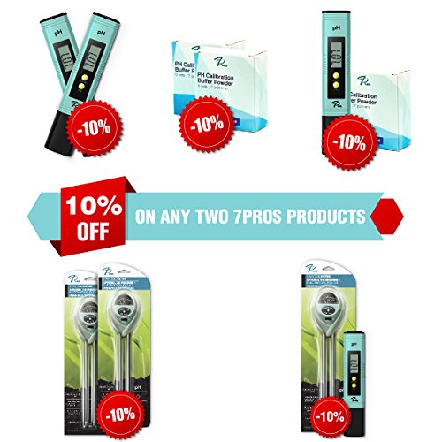 - AUTOMATIC CALIBRATION – our 7Pros PH meter comes factory calibrated, but recalibration is required in case of long period of inactivity or after a frequent use. For a proper calibration you get 2 sets of calibration powder (6 packets), no need of any kind of screwdrivers to calibrate, you just have to push the auto-calibration button. Easy Instructions manual is included