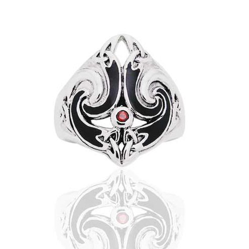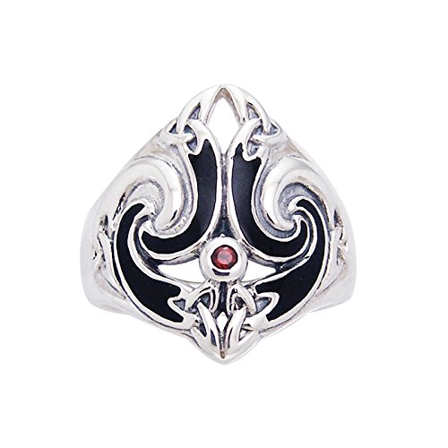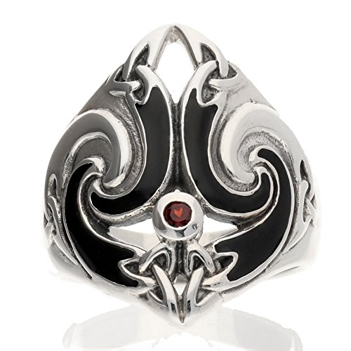 -. Title : Thors Hammer Ring Celtic Knot Triskele Garnet Sterling Silver(Sizes 4,5,6,7,8,9,10,11,12,13,14)