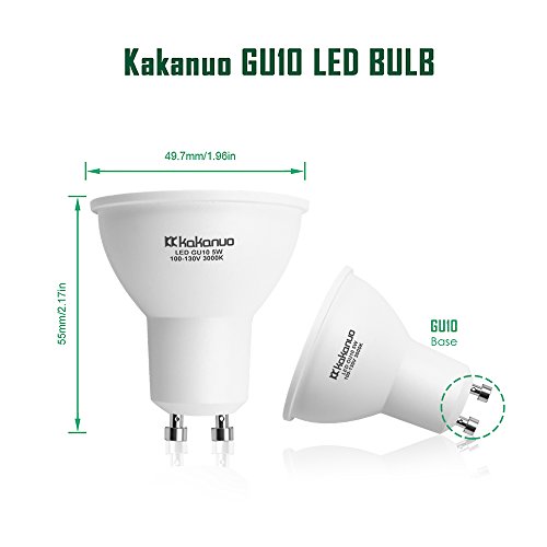 GU10 LED Bulb 50W Equivalent, Kakanuo GU10 Dimmable LED Light 5 watts, Mr16 Spotlight 3000K Warm White 120V Track Light Recessed Light Flood Light 450Lumen(Pack Of 6)