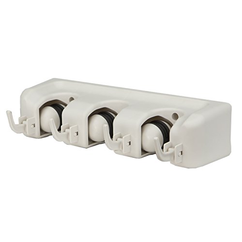 Home Basics Mop and Broom Wall Mounted Rack Organizer, 3 Slots and 4 Hooks
